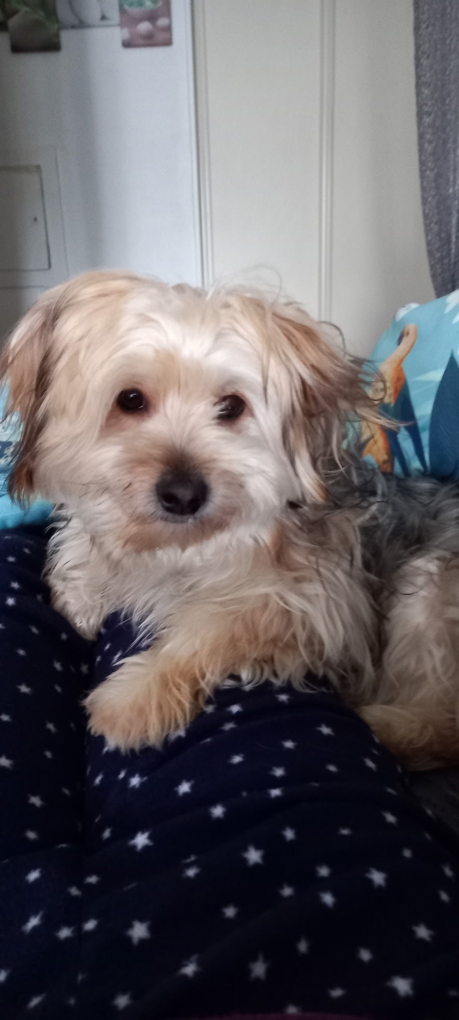 « TAIDY», mâle, de type x yorkshire, de couleur beige et gris, né le 12/04/2025.